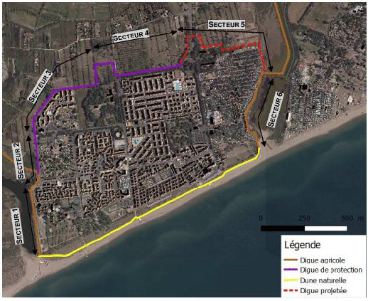 Pour mieux protéger les habitants et les vacanciers, la Communauté d’agglomération Hérault Méditerranée a lancé une étude en vue de créer un système complet d’endiguement. L’objectif : ceinturer totalement la station afin de la mettre à l’abri des crues centennales de l’Orb, même lorsqu’elles coïncident avec une tempête marine décennale.